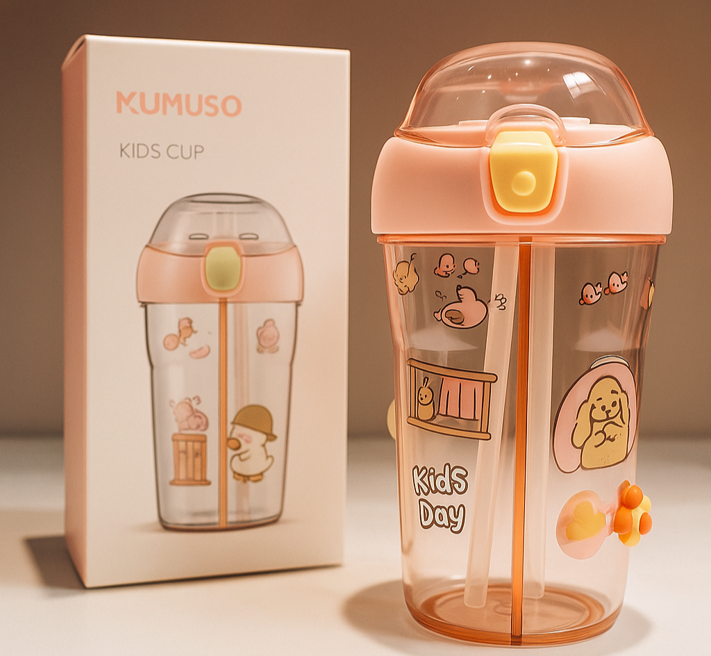 Double Straw Water Bottle – Leakproof & BPA-Free | Colorful Milk & Juice Cup