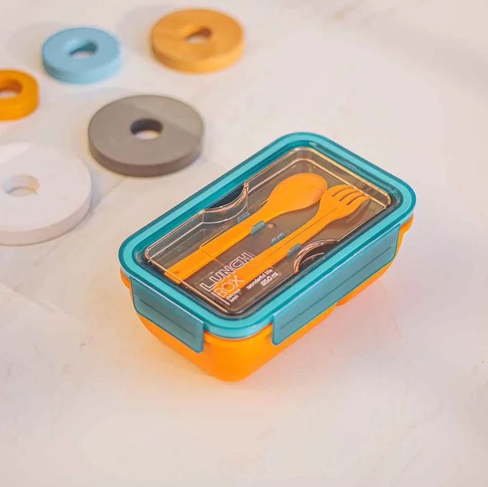 The set includes a dedicated spoon and fork housed neatly in a secure holder plate inside the lid. The crystal-clear top cover offers a sleek, modern look while the 4-side secure locking system ensures your meals stay leak-free and intact until lunchtime.
